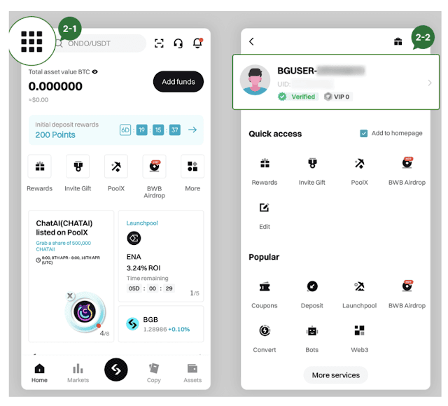 Bitget 앱에 로그인한 후 왼쪽 상단의 프로필 아이콘을 클릭합니다.