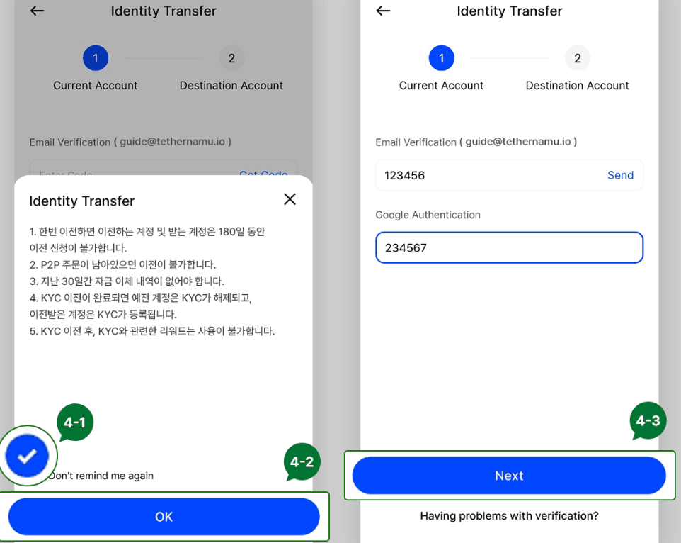 5. 새로 가입한 계정의 이메일 혹은 전화번호와 인증코드를 입력 후, 다음과 같은 화면이 보인다면 KYC 이전 완료!
