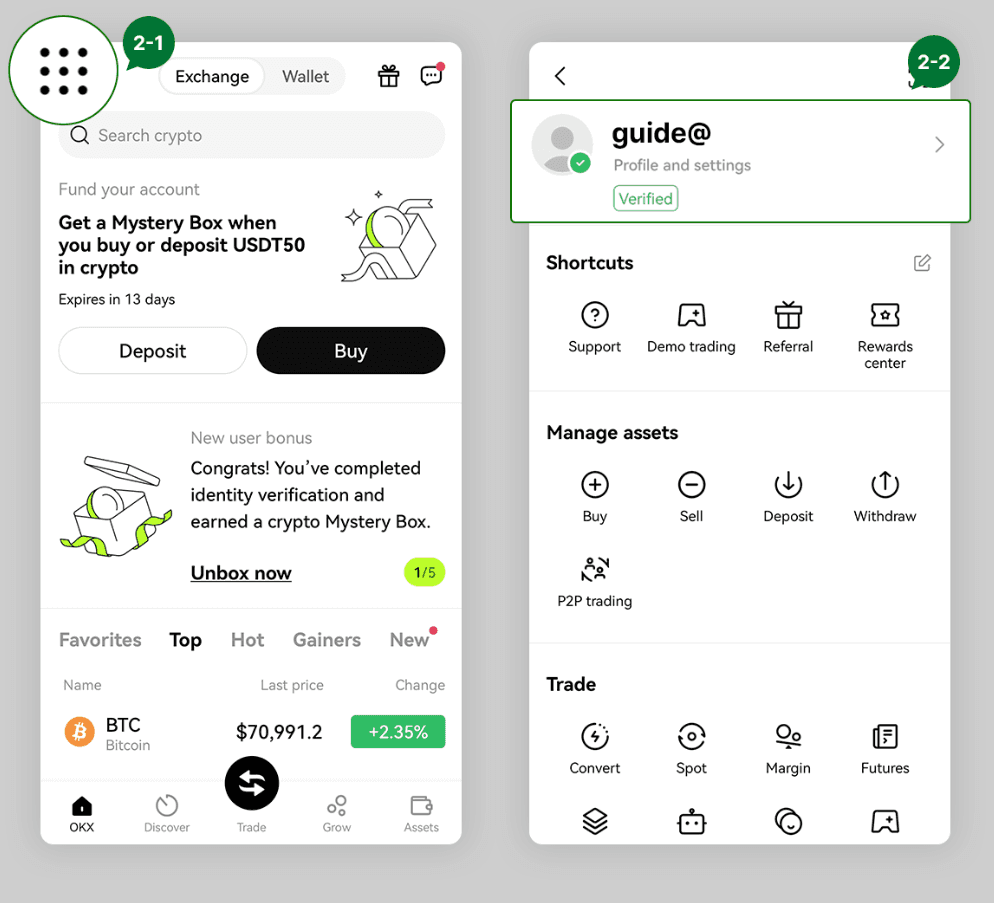 1. OKX 어플에 기존 KYC가 인증되어 있는 계정을 로그인해주세요.